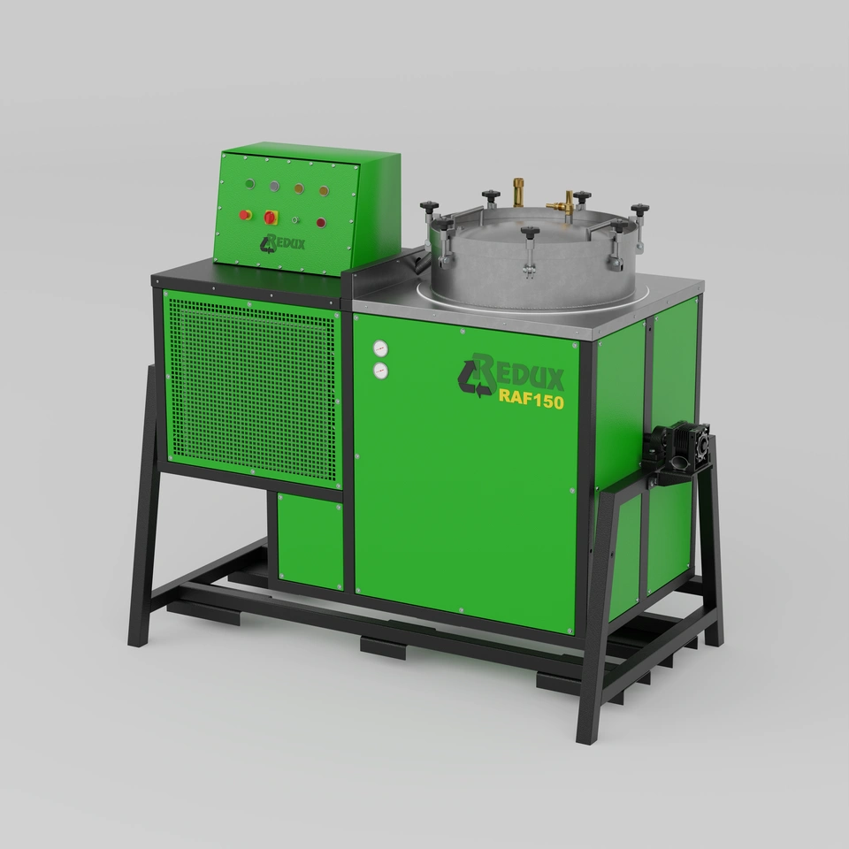 Destylator do rozpuszczalników RAF 150 to urządzenie zaprojektowane dla przedsiębiorstw, które w procesie produkcyjnym zużywają (zabrudzają) rozcieńczalnik w ilości co najmniej 150 l na tzw. 1 zmianę. Urządzenie to umożliwia przedestylowanie ok. 300 l zabrudzonego rozpuszczalnika w okresie 9 h, poprzez zastosowanie wzierników oraz pompy załadunkowej z substancji takich, jak: farby, oleje, tłuszcze, żywice. Wyposażenie destylatora rozpuszczalnika RAF 150 stanowi zbiornik o rzeczywistej pojemności roboczej 150 l i pokrywy, które są wykonane ze stali nierdzewnej INOX.